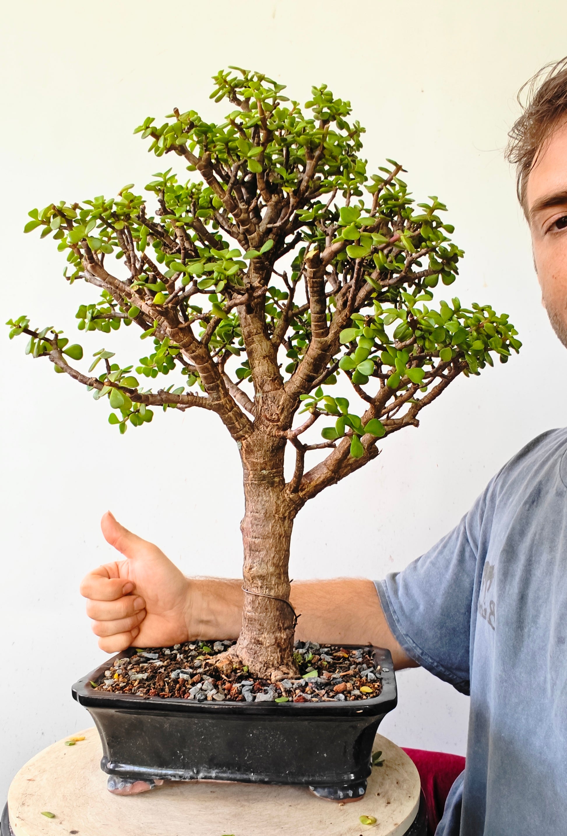 Dwarf jade is a tropical species that is easy to care for. It tolerates variances in water and sunlight, but Prefers full Sun in well draining soil. Dwarf jade is more drough resistant than other species, which means it requires less watering than most other bonsai. Dwarf jade should be kept above freezing temperatures.