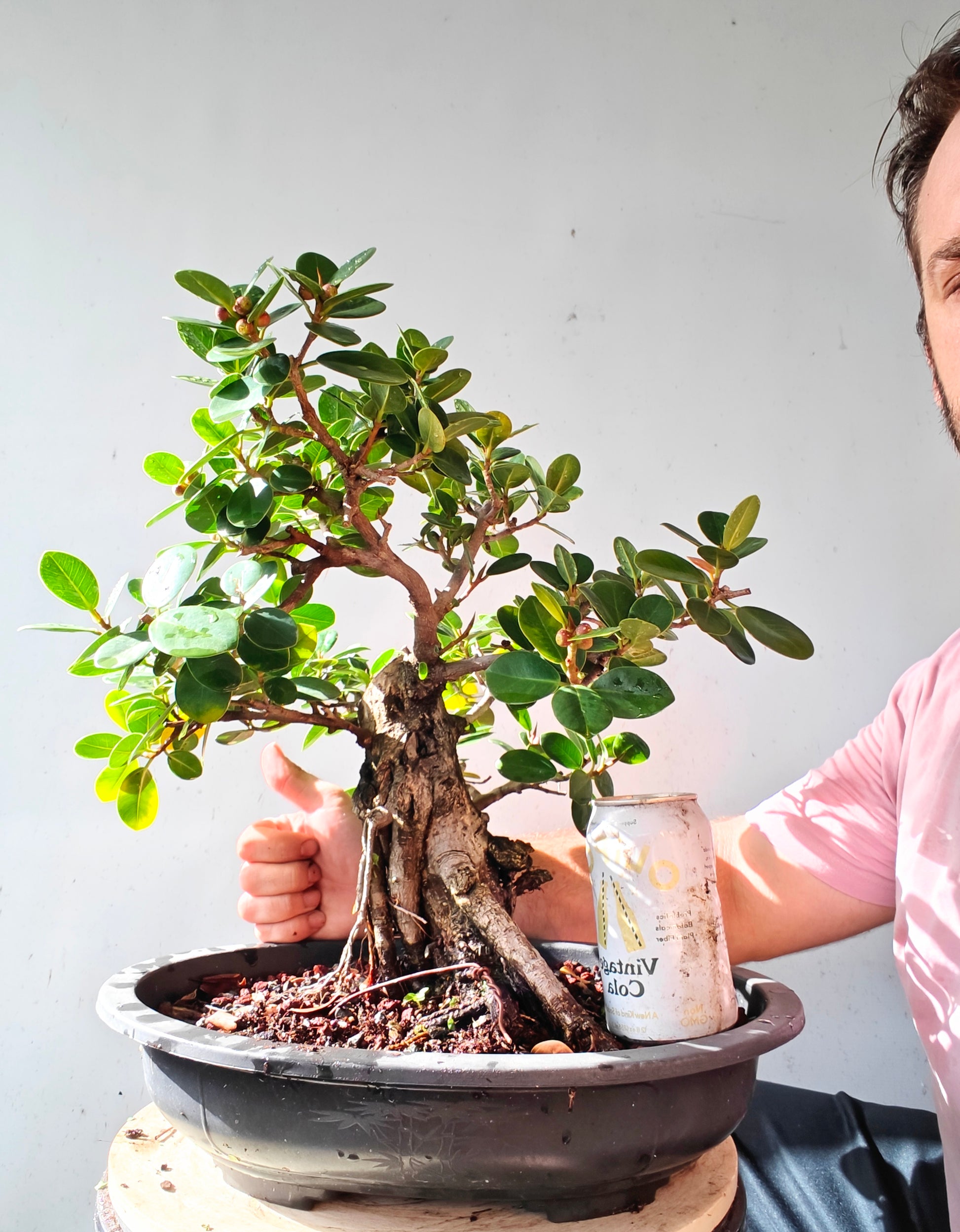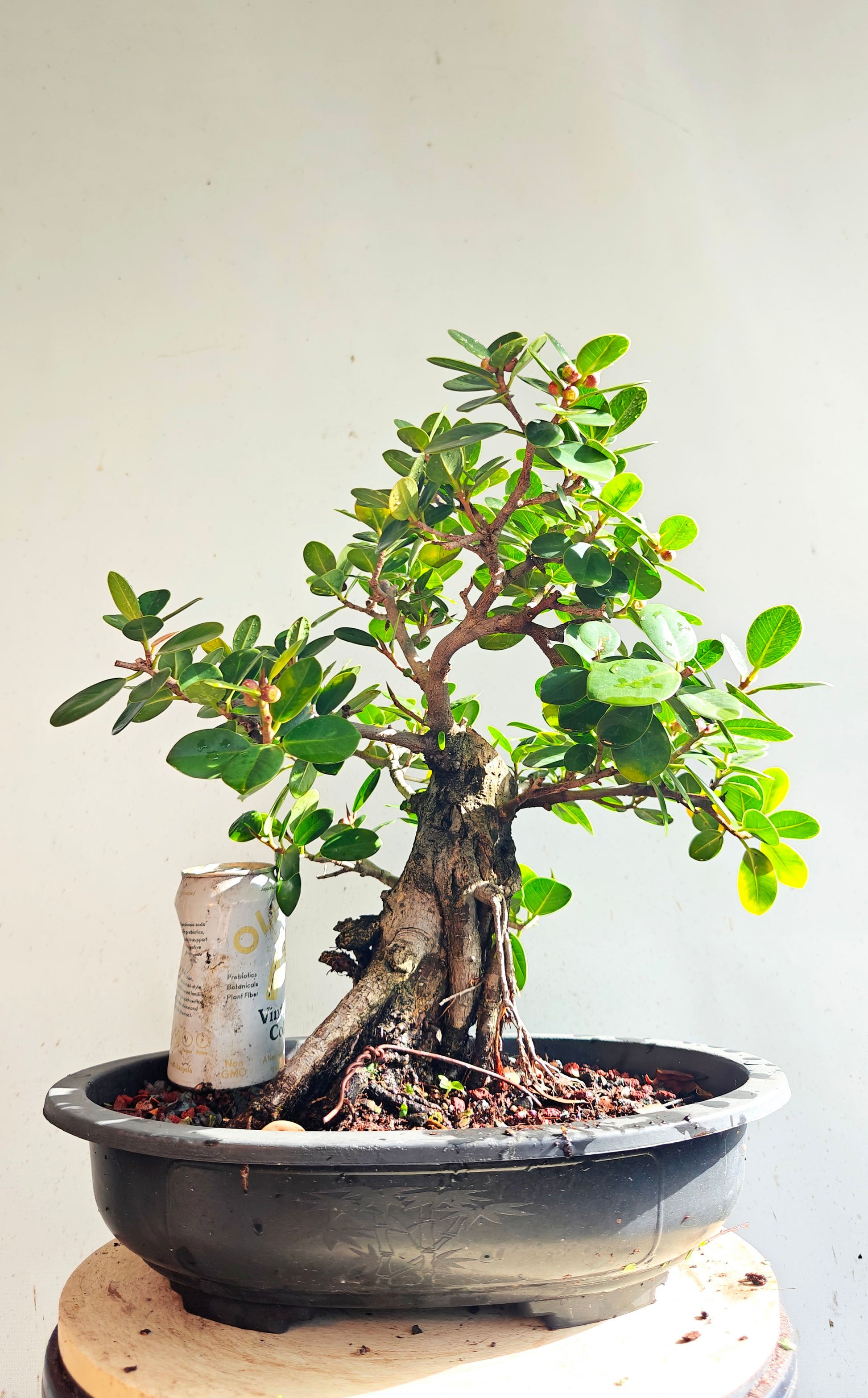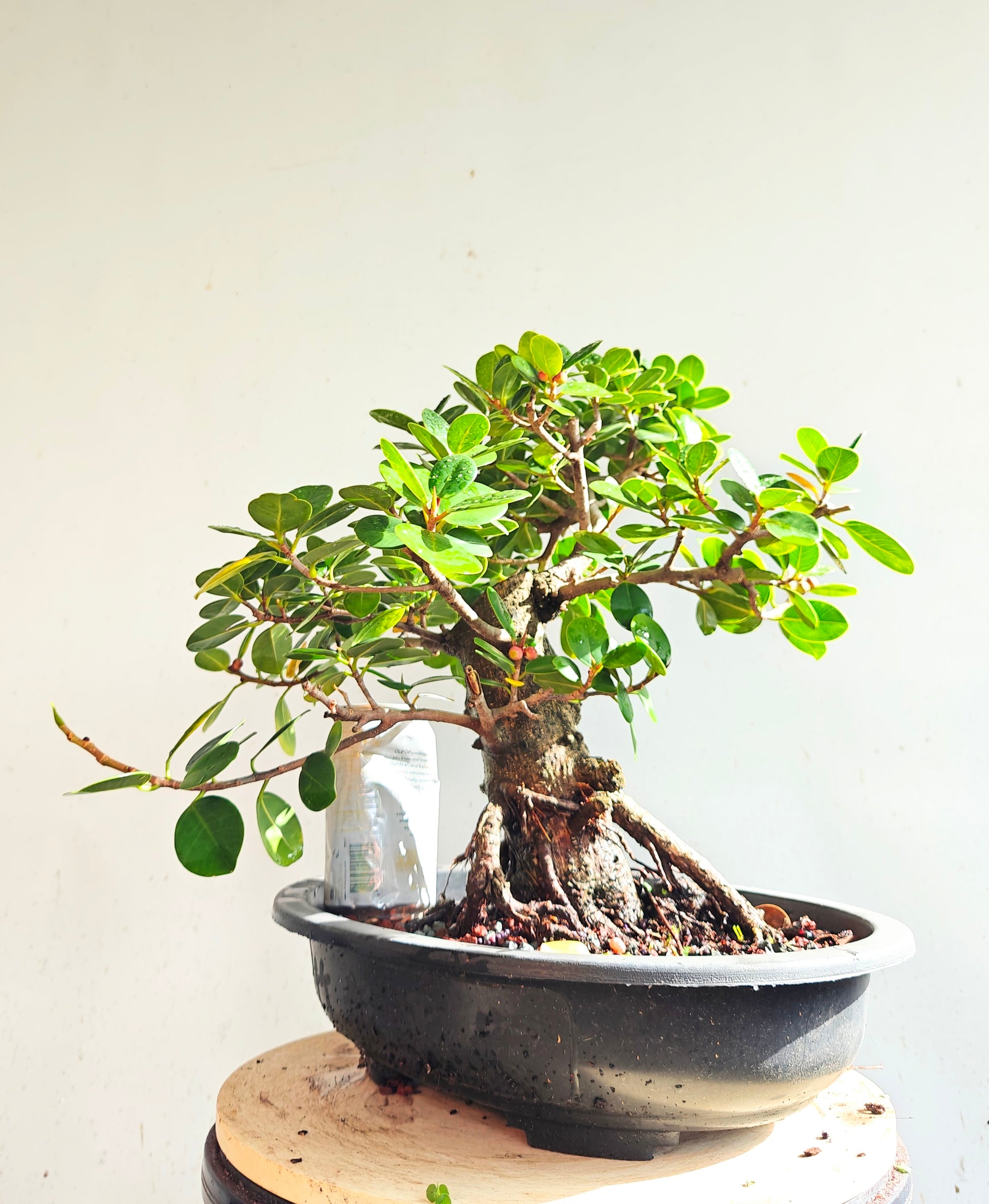 This tropical tree sports aerial roots and bright red figs when outdoors and properly fertilized. This species does well in full sun or shade, and does not tolerate freezing temperatures.