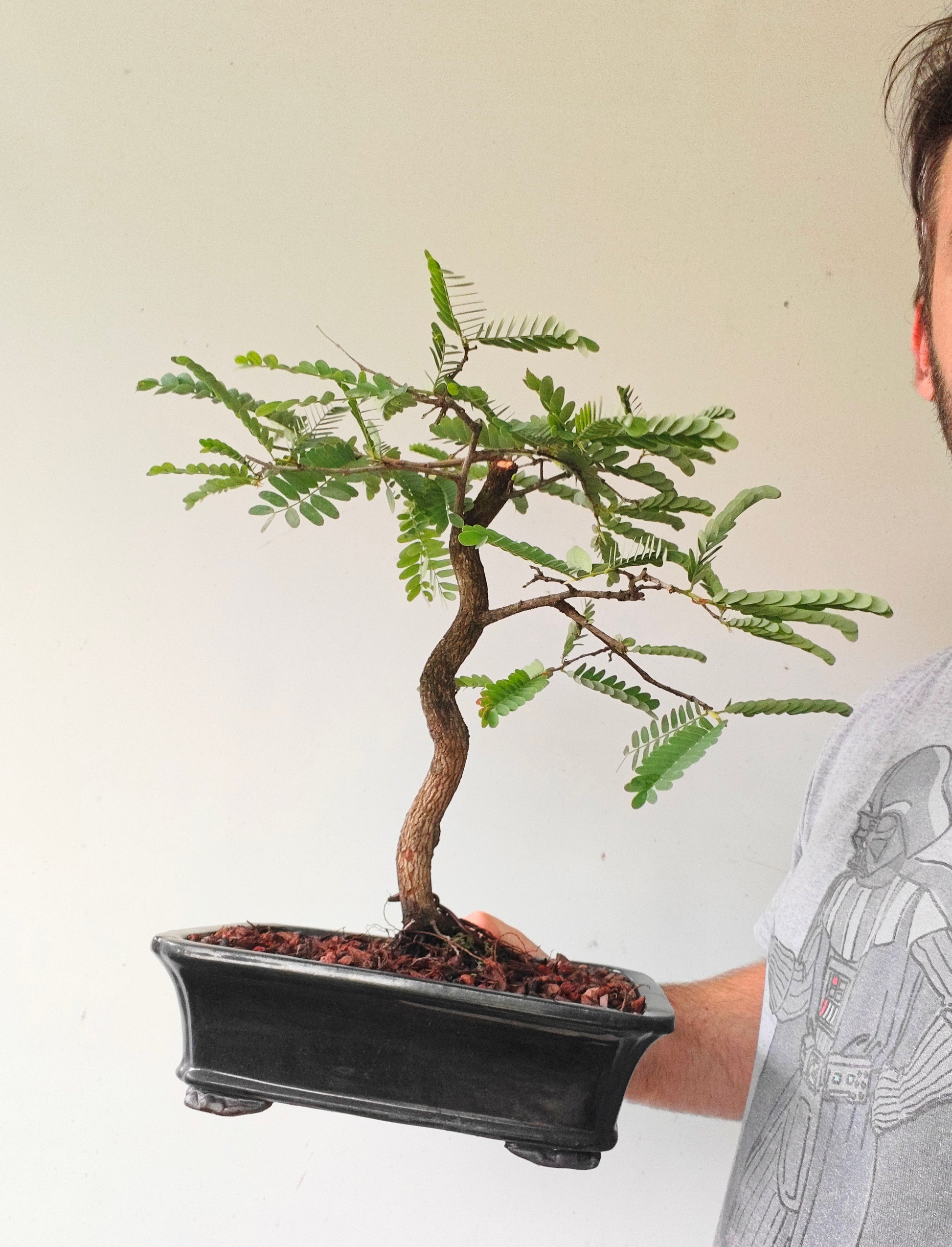 Up for sale is a Tamarind bonsai growing in an 8 inch glazed rectangle. Tree has nice movement and beautiful small flowers when in bloom. This is a tropical species that does best in hot climates and does not tolerate freezing temperatures.