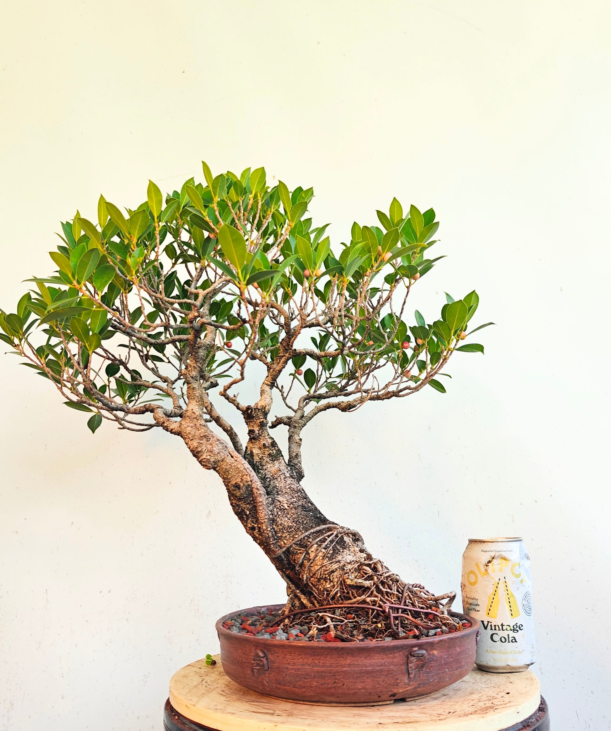 Description: Tigerbark Ficus growing in a handmade bryanlovesbonsai pot. In development in my collection for over 5 years.
